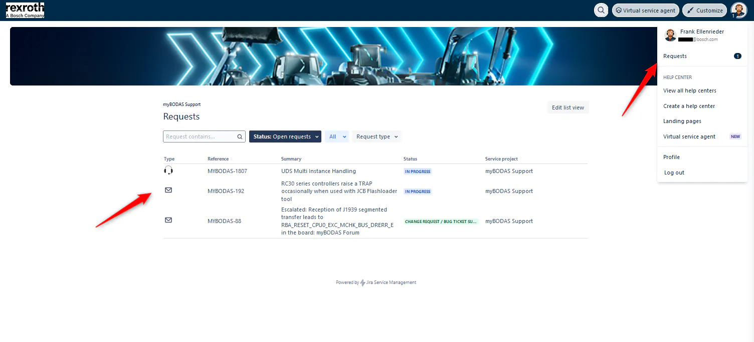 Herefore it is important to login to the customer portal: https://support-mybodas.atlassian.net/servicedesk