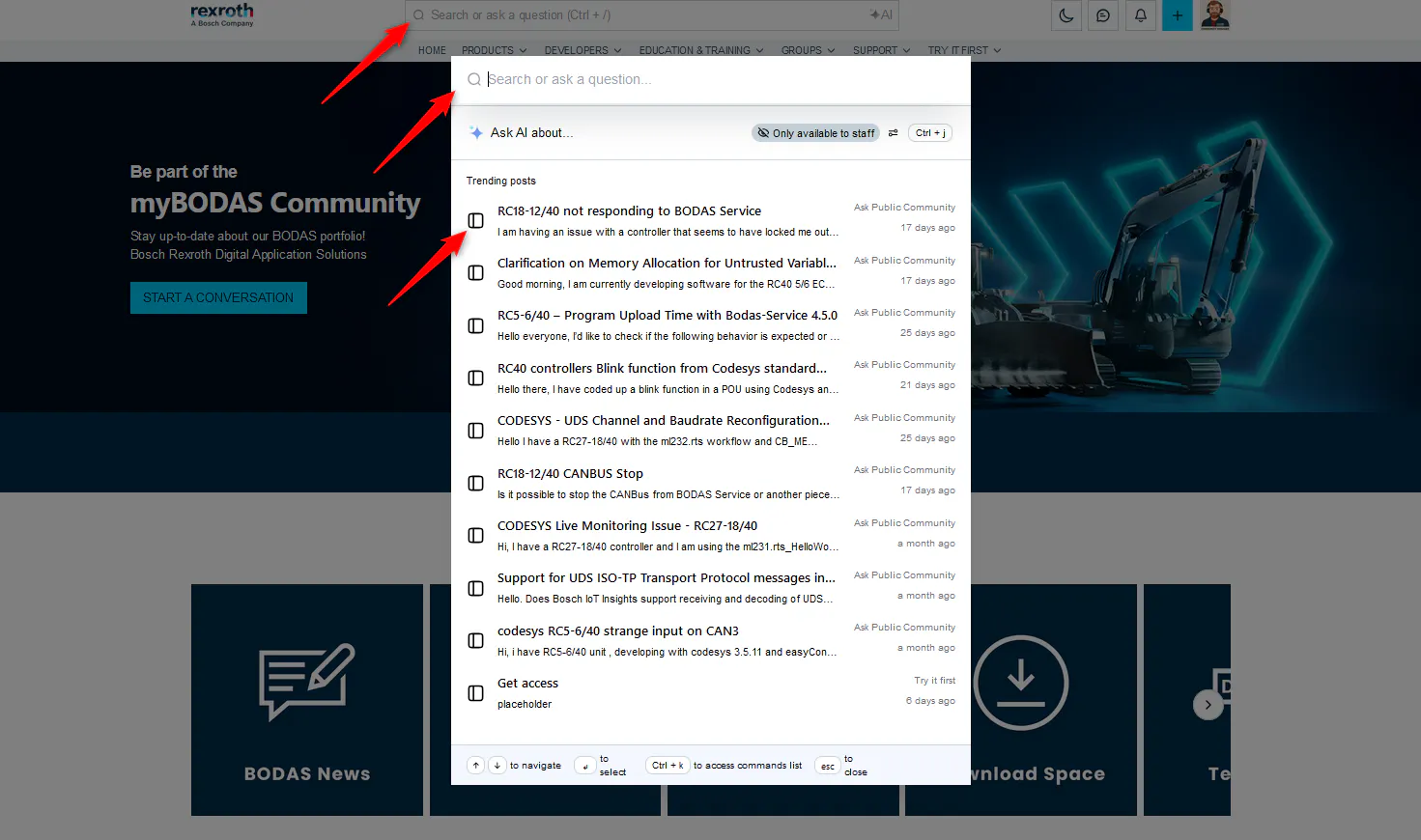 To search within the myBODAS Community just use the search bar to explore the content of the whole Community and get suggestions which existing solution might suit you best!